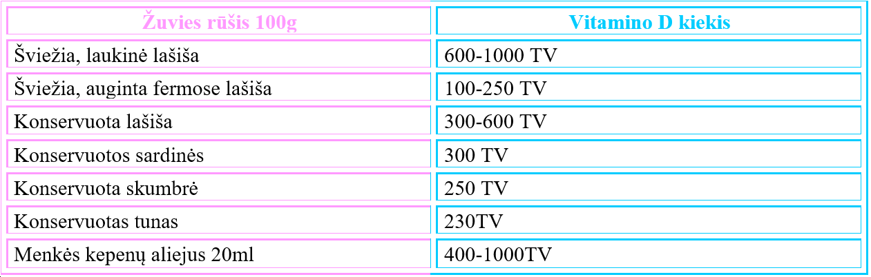 Pagrindinis natūralaus  D vitamino maisto šaltinis  yra žuvis.