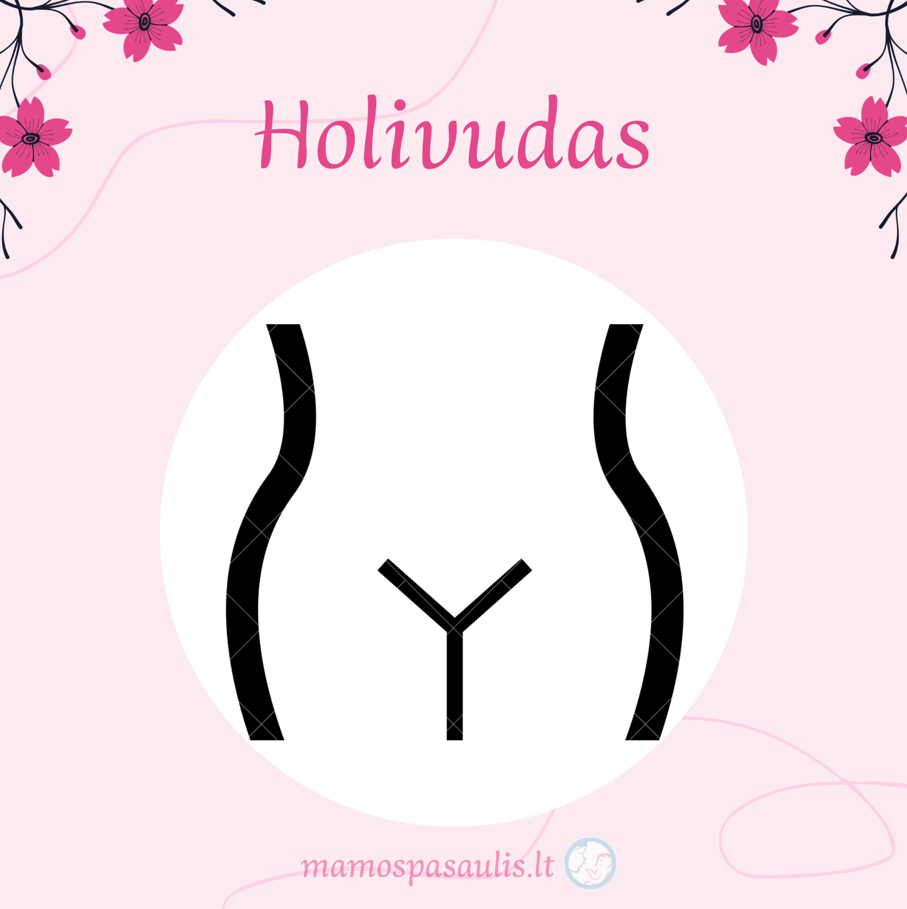- Holivudas – kuomet pašalinami visi plaukai. Dažniausiai pasirenkamas variantas, nereikalaujantis daug pastangų.